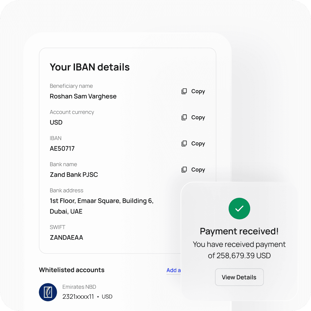 Receive and route payments globally with virtual IBANs.